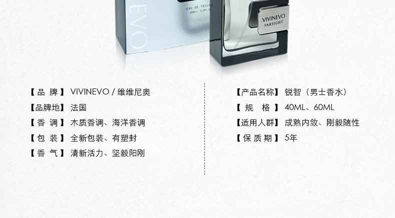 维维尼奥(VIVINEVO)品牌法式香水40ml持久淡香清新海洋木质古龙香水