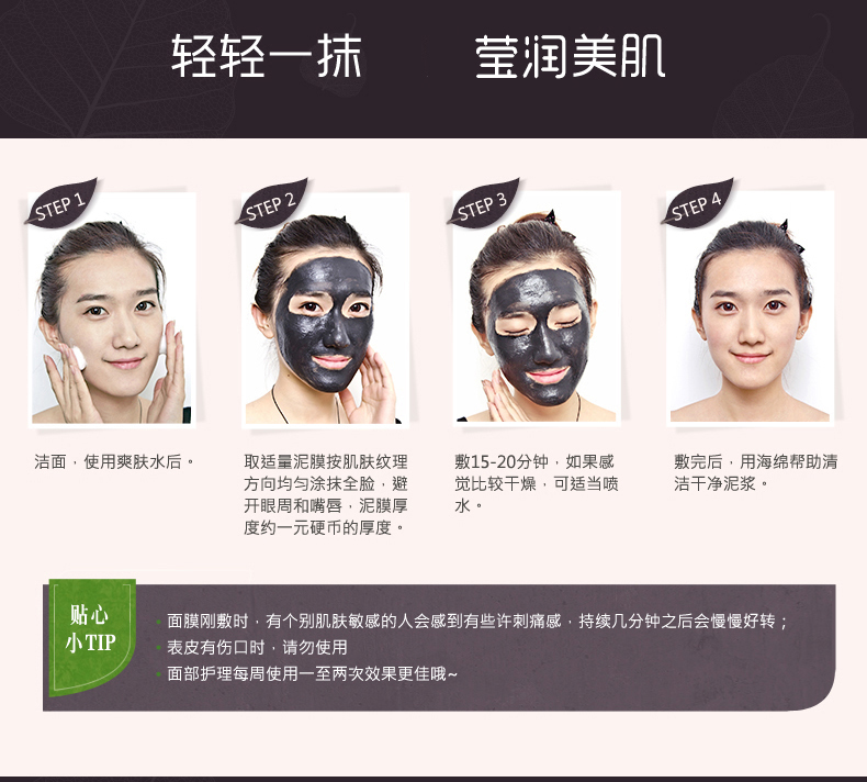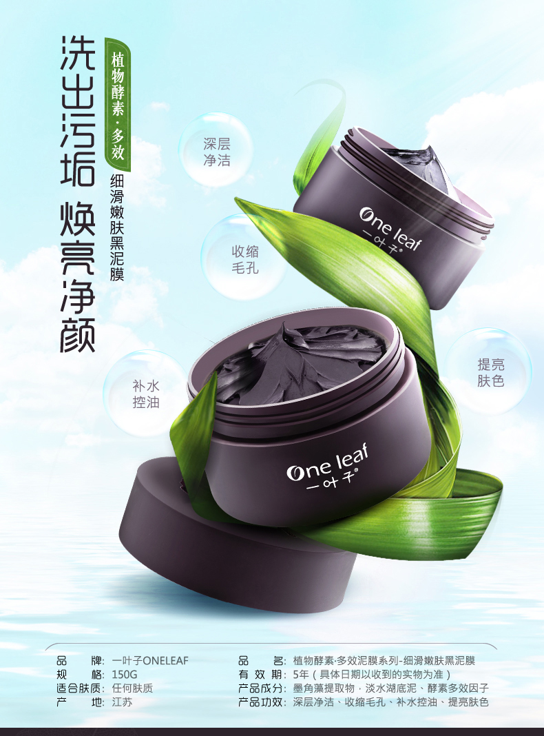 一叶子黑泥膜补水保湿深层清洁毛孔面膜泥